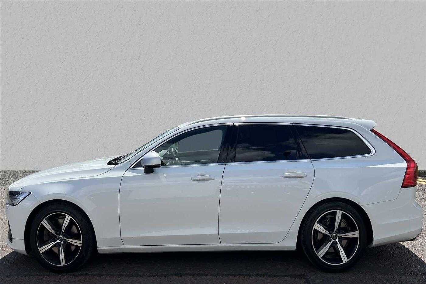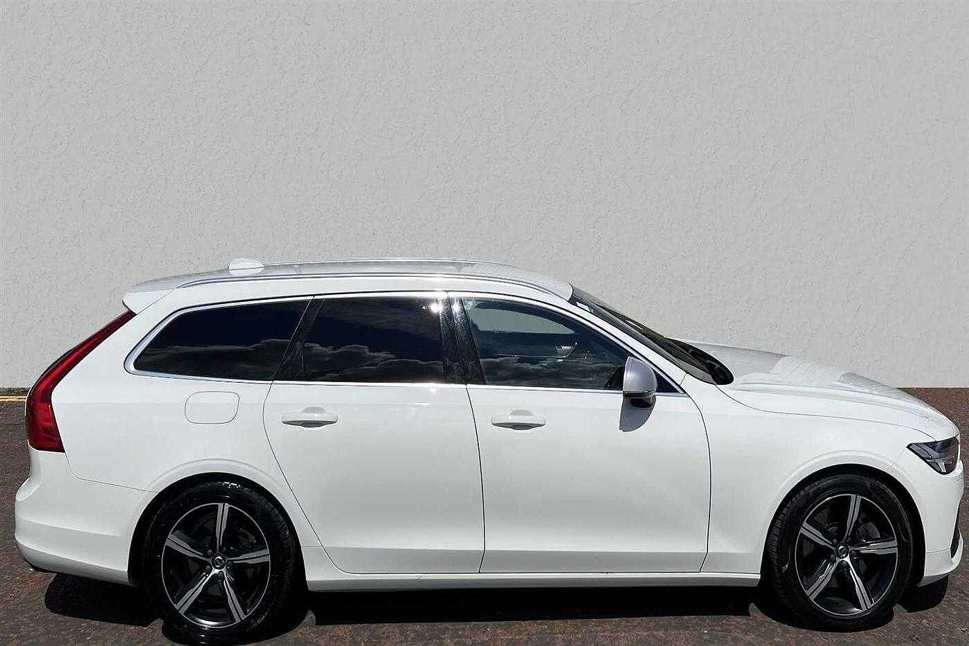 Volvo V90 2.0TD 235bhp AWD D5 R-Design Pro Powerpulse finished in White with matching matching interior. Specification includes anti-lock brakes, climate control, power-assisted steering, knee (driver) air bag, alloy wheels-20in 5-double sp. diamond cut/matt b., satellite navigation, traction control system, touch screen monitor (touch screen monitor), dark tinted windows (rear doors/cargo area), immobiliser, mirrors external (electric heated/folding), front fog lights, rain sensor, armrest (front/rear), 12.3in active tft crystal drivers info. display, adaptive cruise control (adaptive cruise control), adjustable steering column/wheel (rake/reach), air bag driver, air bag passenger, air bag side (front side/front & rear curtain), alarm, cargo space divider, central door locking (remote), centre console, centre rear seat belt, child locks (manual), dab radio, deadlocks, electric parking brake (electric parking brake), electric windows (front/rear), electronic brake force distribution, electronic stability programme, exterior lighting (led lights), extra storage, floor mats, gear knob leather, head restraints (front/rear), heated rear screen, integrated sun curtains - rear doors, keyless start (keyless start), metal mesh inlays, mirrors internal (automatic dimming rear view), on-board monitor (unspecified), remote hatch opener (remote hatch opener), roof rails, roof spoiler, seat - isofix anchorage point (two seats - rear), seat belt pre-tensioners (front/rear), seat height adjustment (electric driver/passenger), seat lumbar support (driver/passenger), seats electric (driver/passenger), seats heated (driver/passenger), seats split rear, spare wheel, start/stop system (start/stop system), steering wheel leather, steering wheel mounted controls, telephone equipment (bluetooth interface), third brake light, trafficmaster, tyre pressure control, upholstery leather, voice activated controls and whiplash protection system.